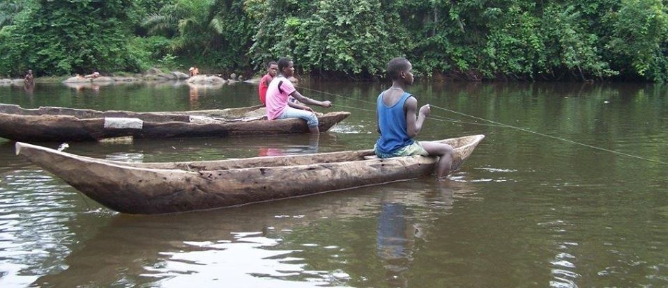 Introduction: Image du débarcadère des villages Düm-Nloong ou Düm-Nyoong et Mfida "Yanda " sur la rive droite du fleuve Nyong ou Nlong du Cameroun.