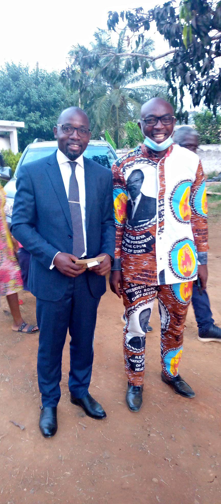 Sur l'image de la photo, nous avons de gauche à droite M. Bineli II Georges et Sa Majesté Onana Étoundi Simon, chef de 2ème degré du groupement Mbog-Naama II de l'arrondissement d'Okola dans le département de la Lekié.