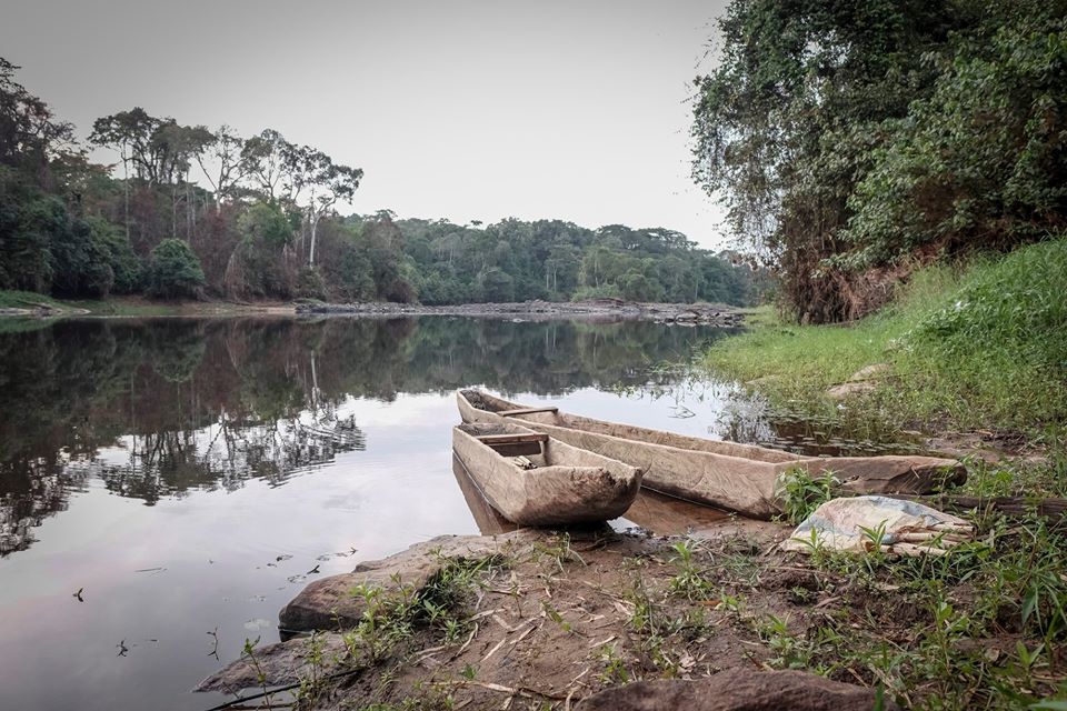 Introduction: Image du débarcadère des villages Düm-Nloong ou Düm-Nyoong et Mfida "Yanda " sur la rive droite du fleuve Nyong ou Nlong du Cameroun.