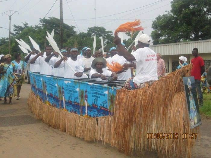 Introduction: Image d'une parade lors de la fête commémorative du " Maayi " des peuples autochtones du groupement Bah-Itaanga ba Lohoovè de la ville de Kribi, fête qui a lieu chaque 9 mai de chaque année dans tous les villages de Bah-Itaanga Bah-Nôhô des chefferies supérieure de groupement Bah-Itaanga du département de l'Océan.