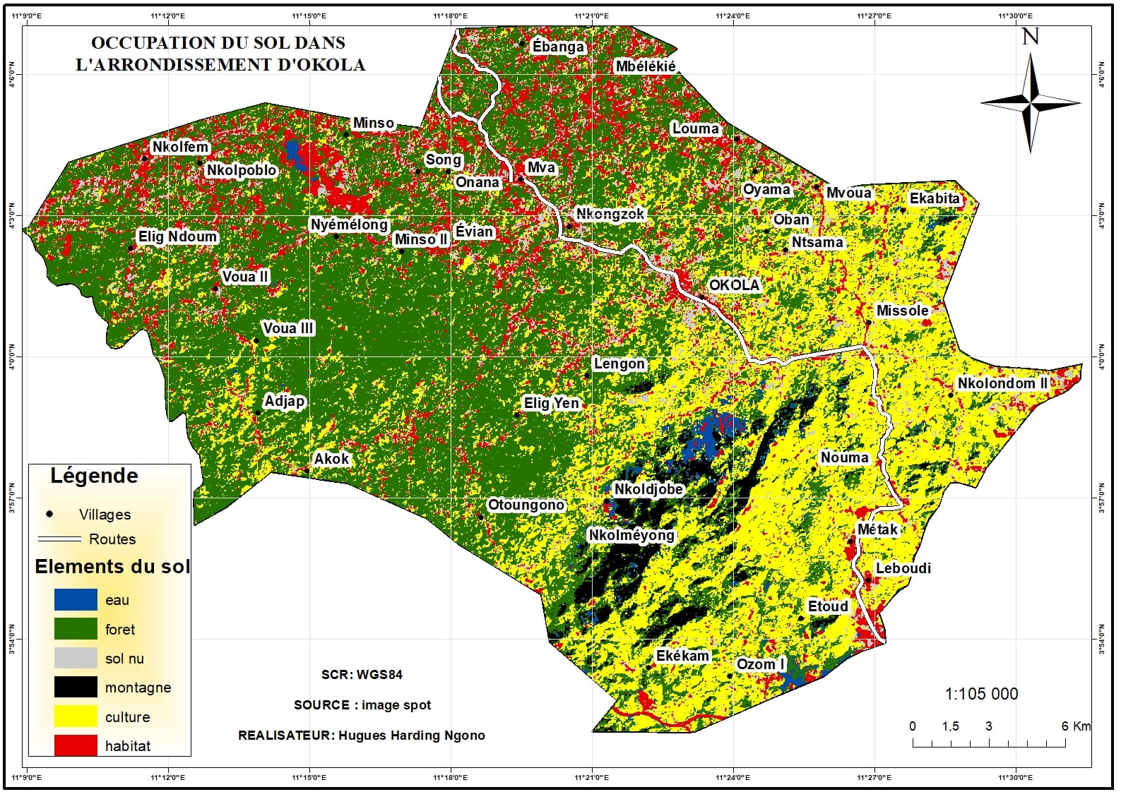 Sur l'image de la photo, nous avons une carte d'occupation du sol de l'arrondissement d'Okola, carte réalisée sur Argis et Erdas.